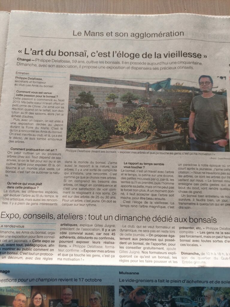Six présentations du club ont été sélectionnées pour être exposées au CONGRES NATIONAL DE LA FEDERATION FRANCAISE DE BONSAI en 2026. Les trois présentations de “shohin” sont réalisées avec les arbres de Gilles et de Philippe.